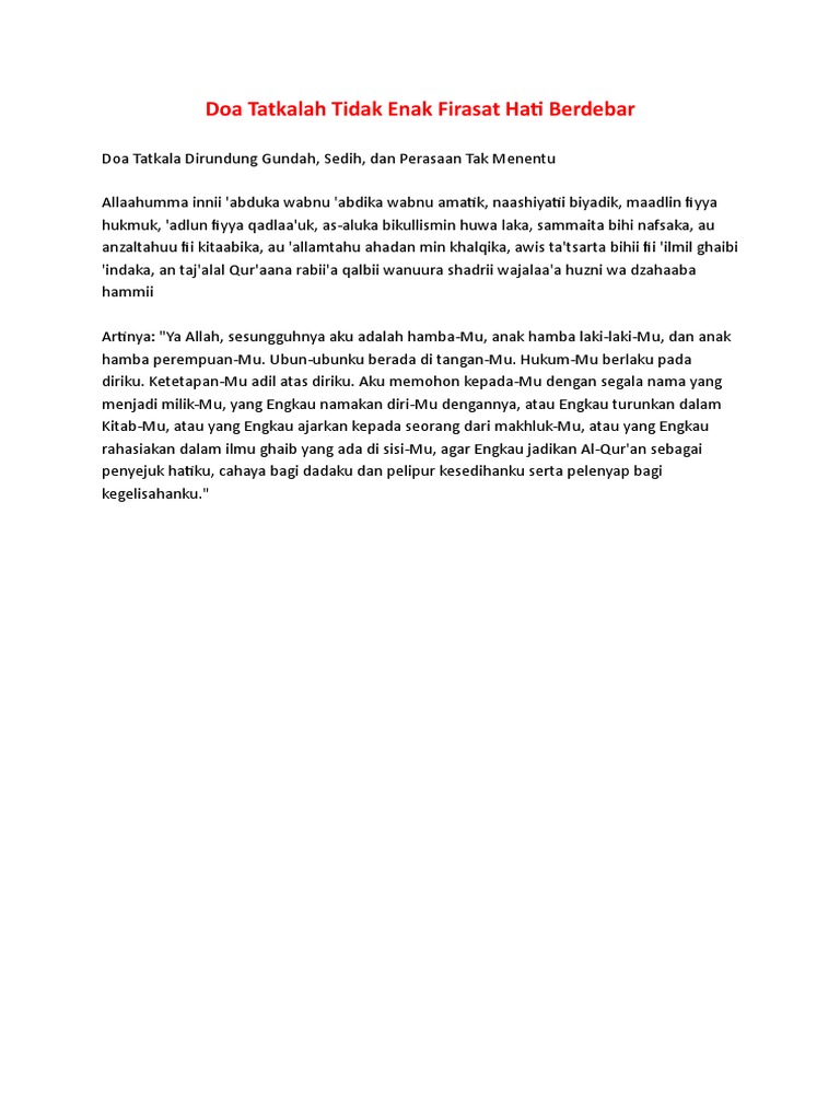 Doa Tatkalah Tidak Enak Firasat Hati Berdebar Pdf