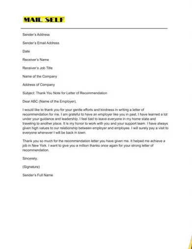 Thank You Letter For The Letter Of Recommendation How To Templates Examples Mail To Self